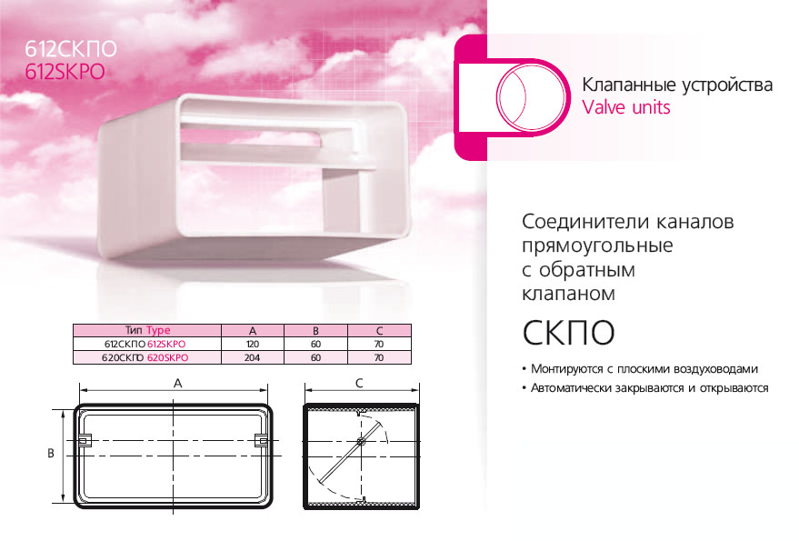 Соединитель прямоугольных воздуховодов с обратным клапаном 60х204