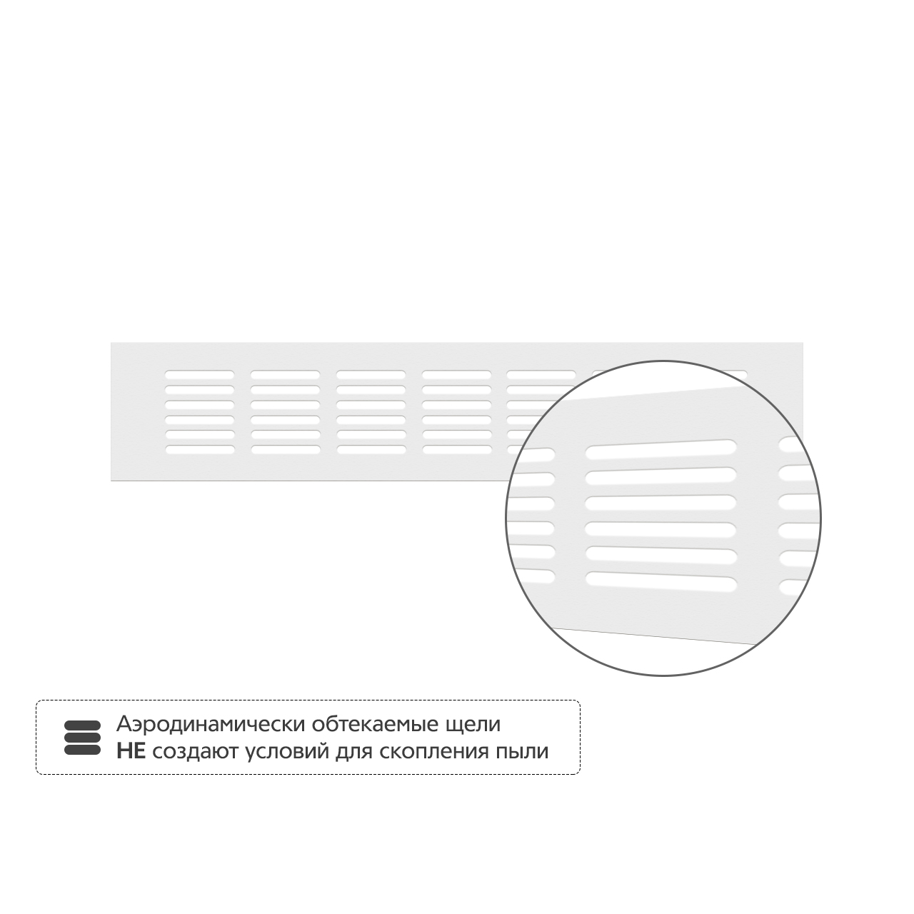 • Аэродинамически обтекаемые щели не создают условий для скопления пыли