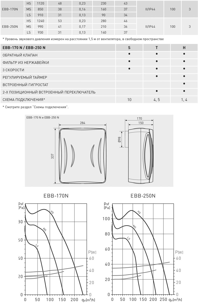 Центробежные вентиляторы с максимальной производительностью 270 м3/час при свободном выбросе, и с клапаном обратного хода.