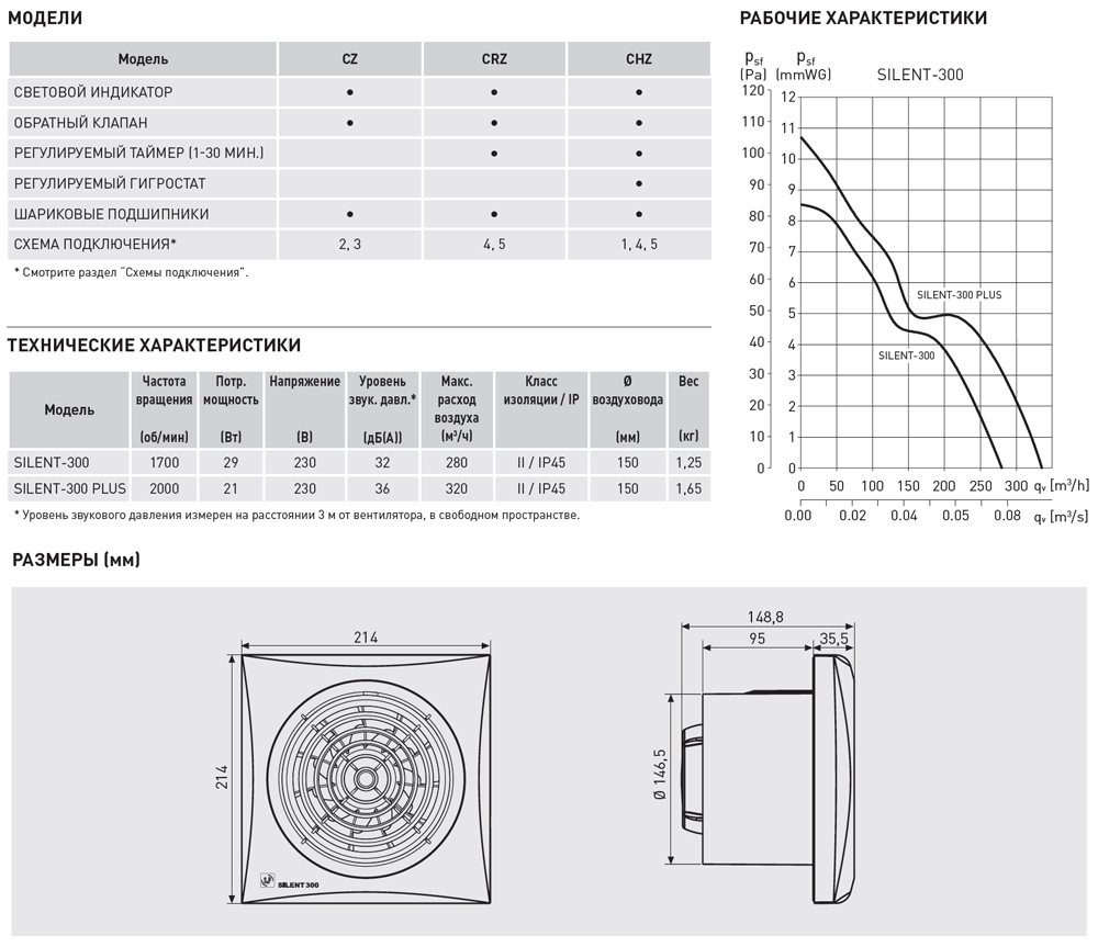 SILENT 300 CZ PLUS – тихий вентилятор с увеличенной производительностью. Вентилятор подходит для ванных комнат площадью от 15 до 25 м2.